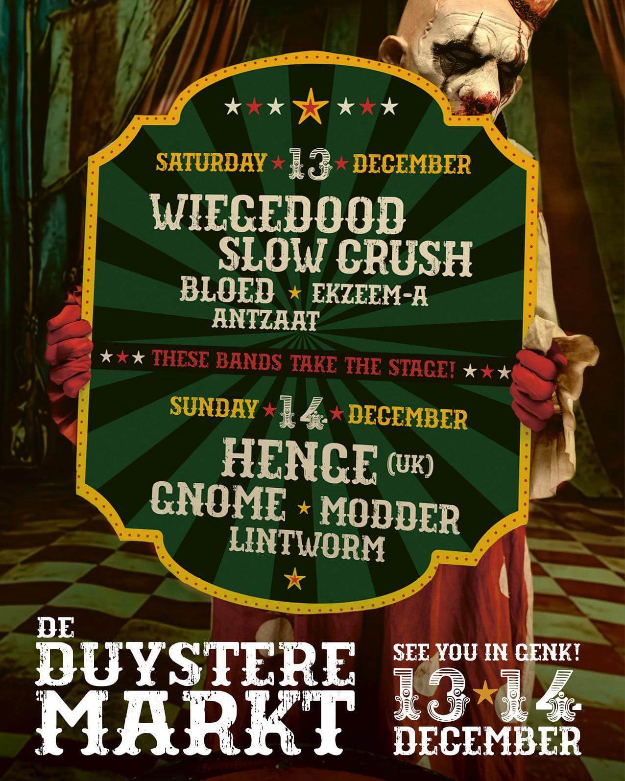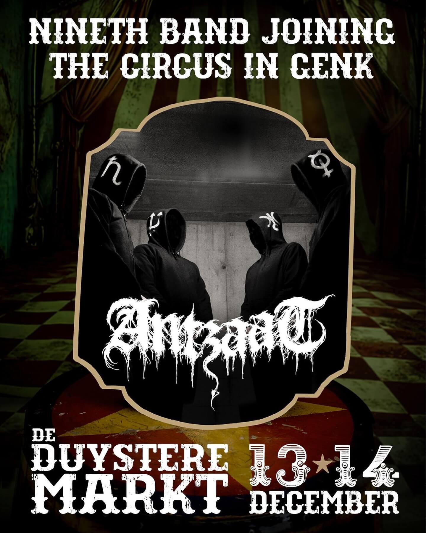 We have been summoned to join De Duystere Markt in Genk on the 13th of December. This market is known for curiosities and oddities, but also for their exquisite taste in music as we'll be sharing the stage with Wiegedood, Slow Crush, Bloed and Ekzeem-A.
